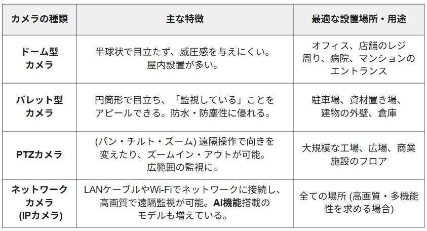 ■設置前に知っておきたい!防犯カメラの種類と特徴