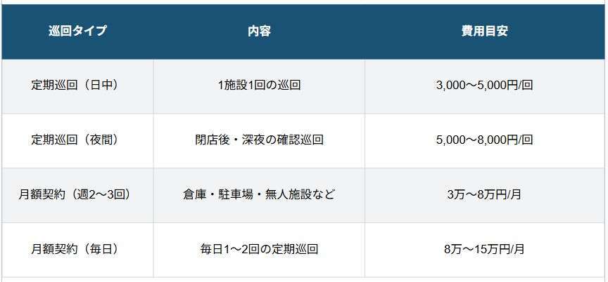 ●巡回警備の料金相場